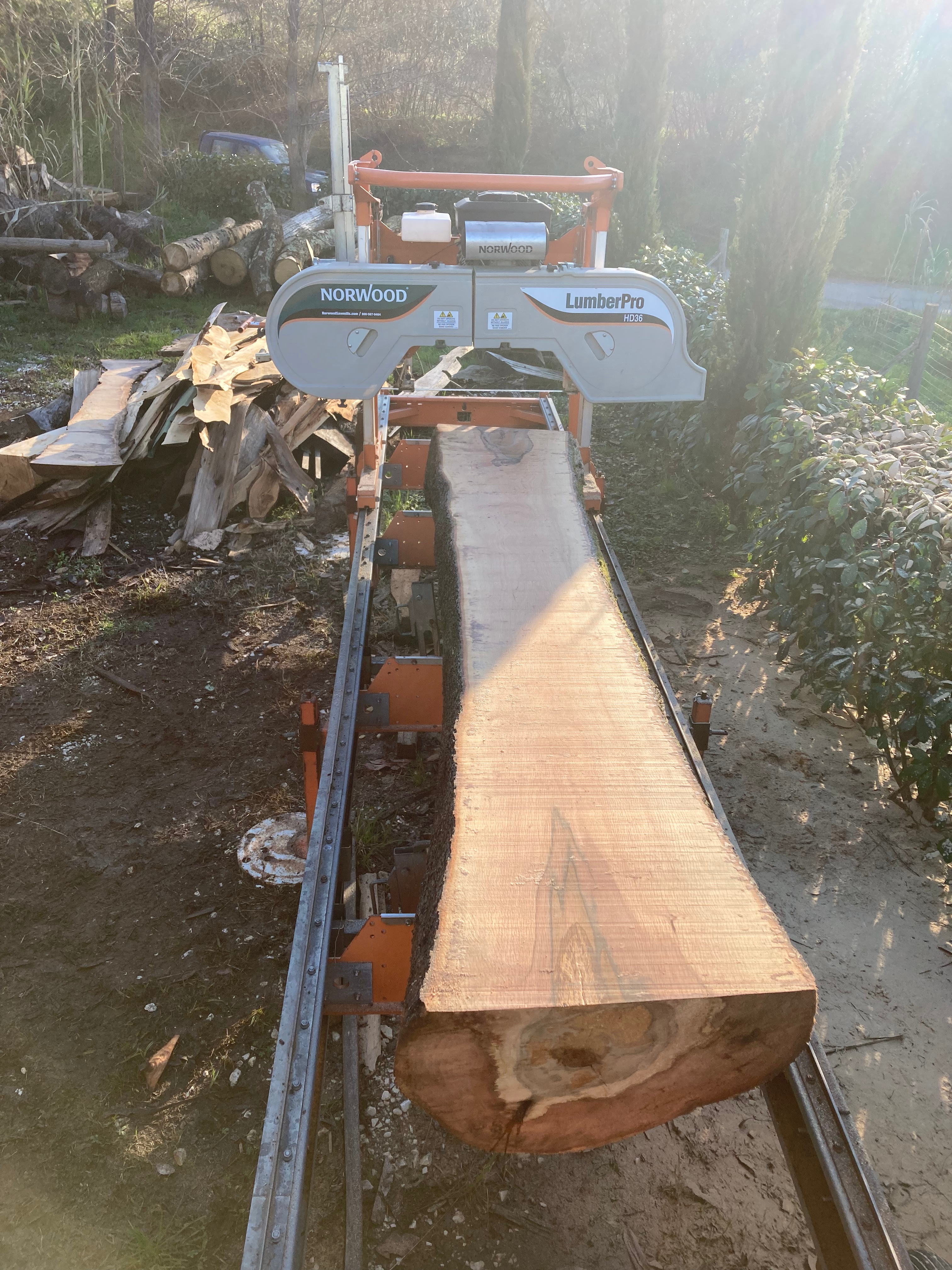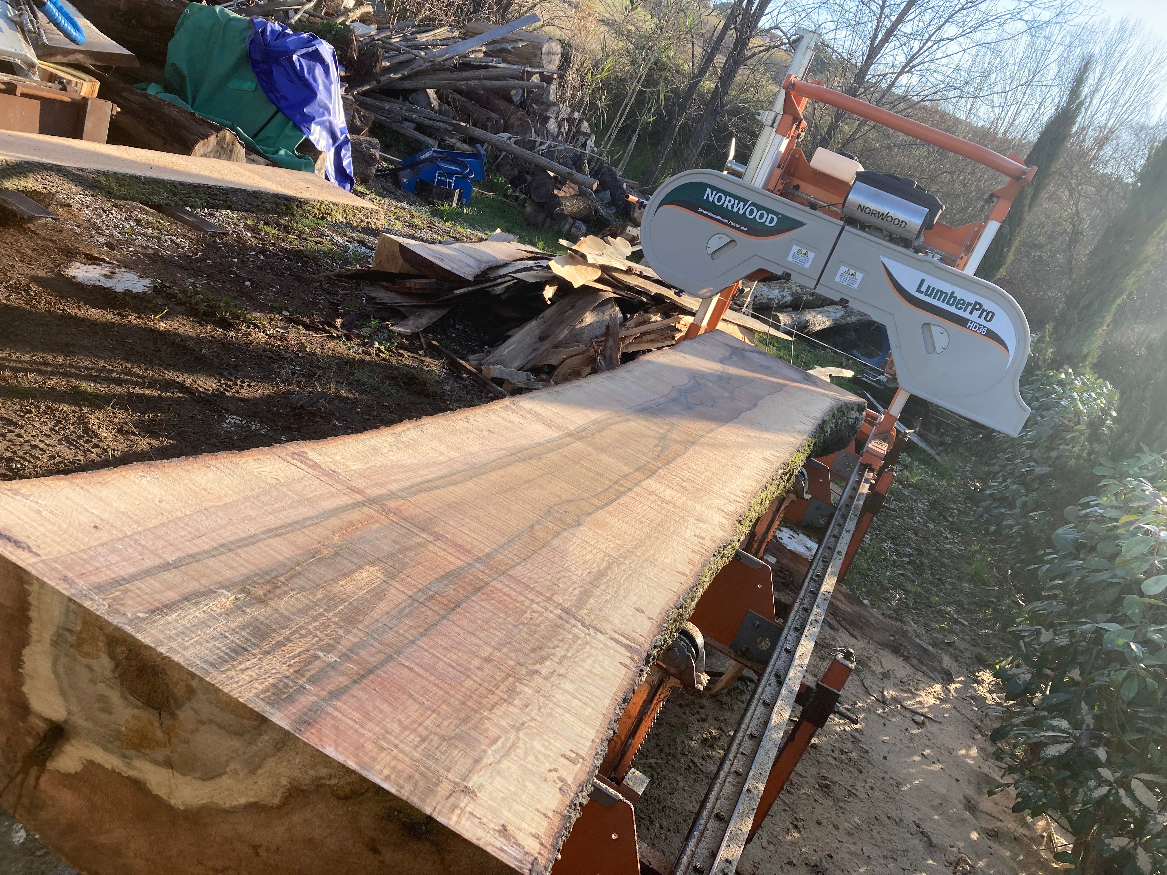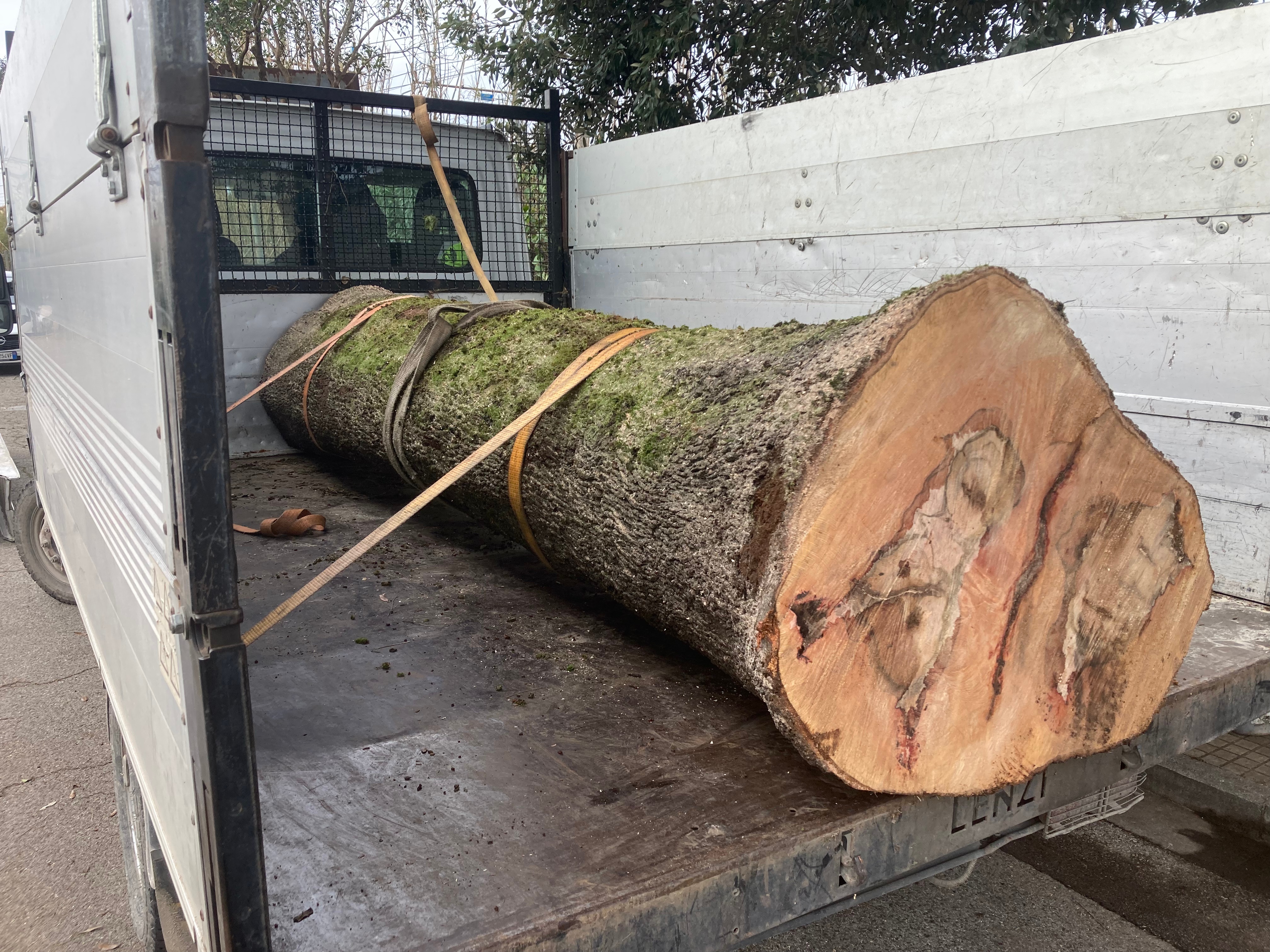 Dopo l’abbattimento abbiamo provveduto alla fresatura della ceppaia e, per dare nuova vita a questo straordinario albero, abbiamo segato il tronco in tavoloni: diventeranno un tavolo unico, pensato per ricordare per sempre il nostro caro Leccio.